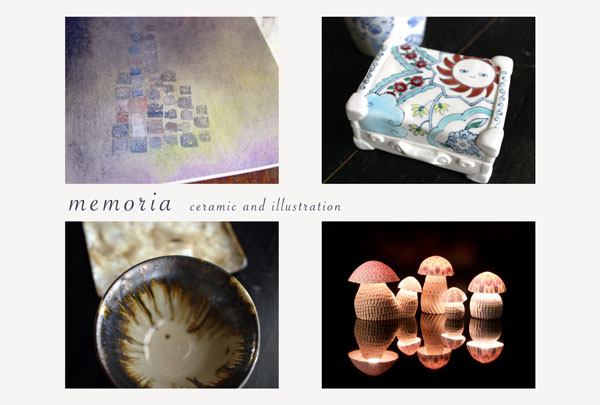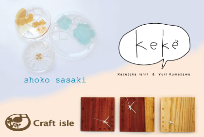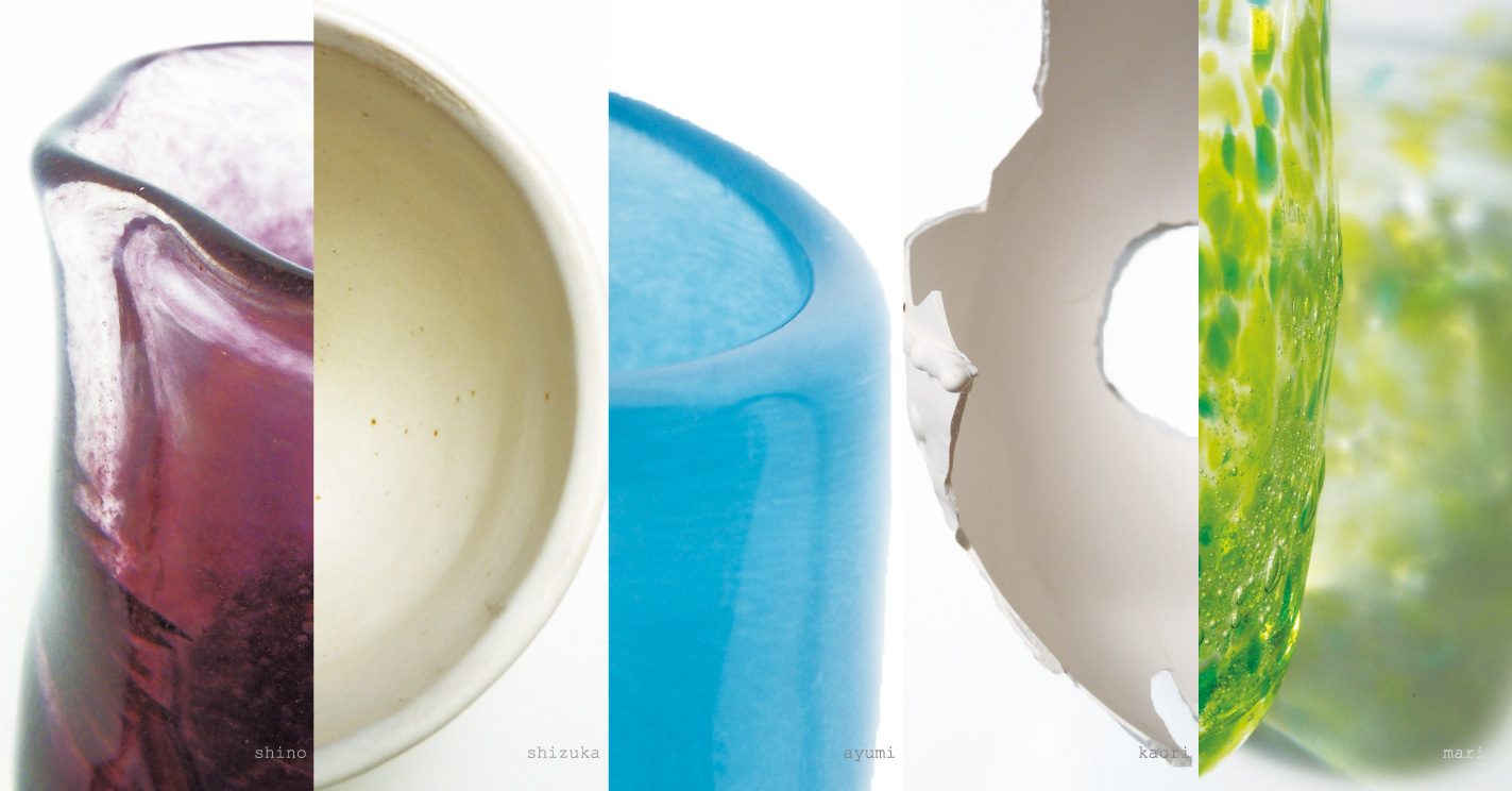 篠田知依(陶) 山下智恵子(ガラス) 亀田智子・坂本梓・藤井みどり(3人によるpaper goods)